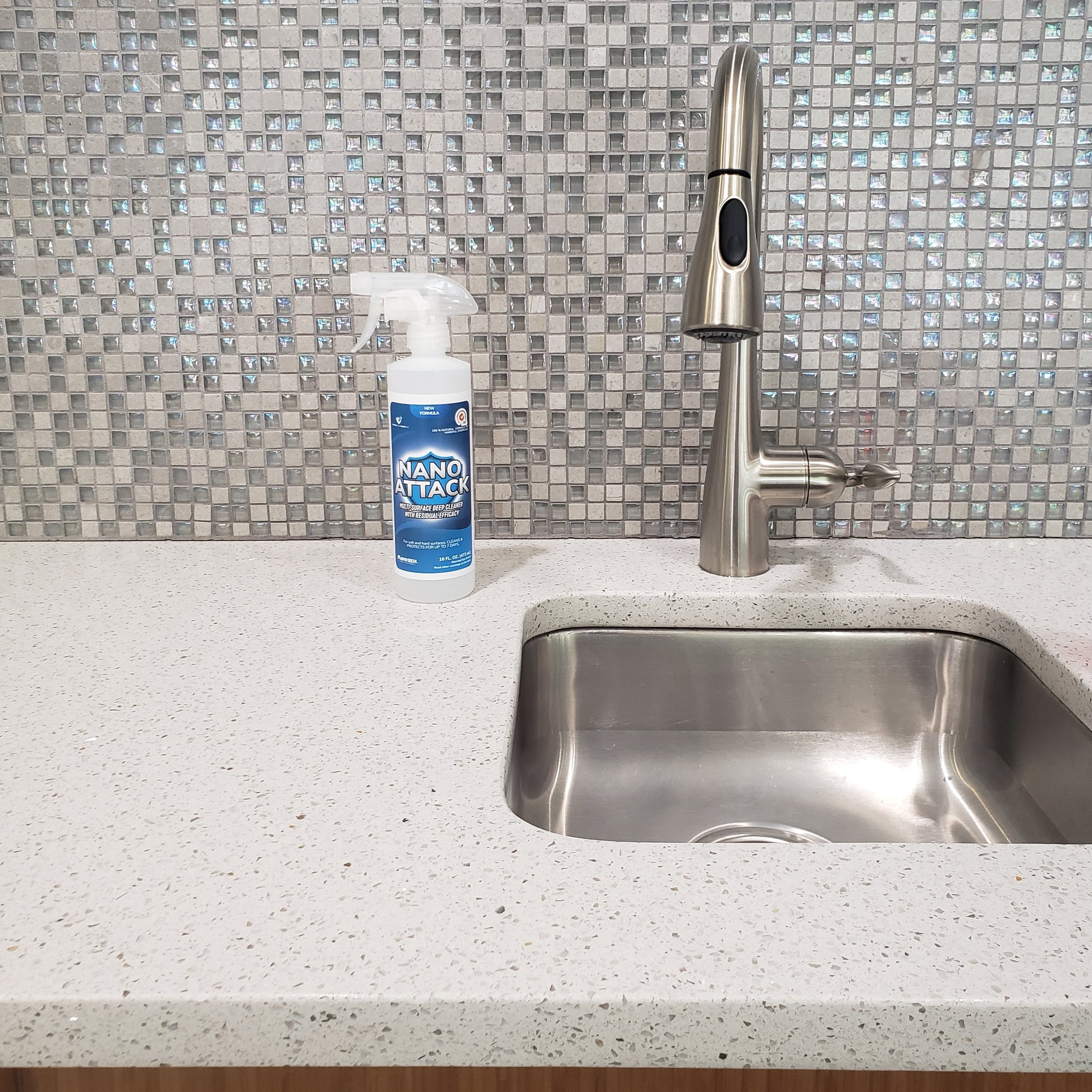 - 1 x 2 Oz. of Nano Attack: 100% all natural, alcohol-free multi surface deep cleaner and sanitizer.