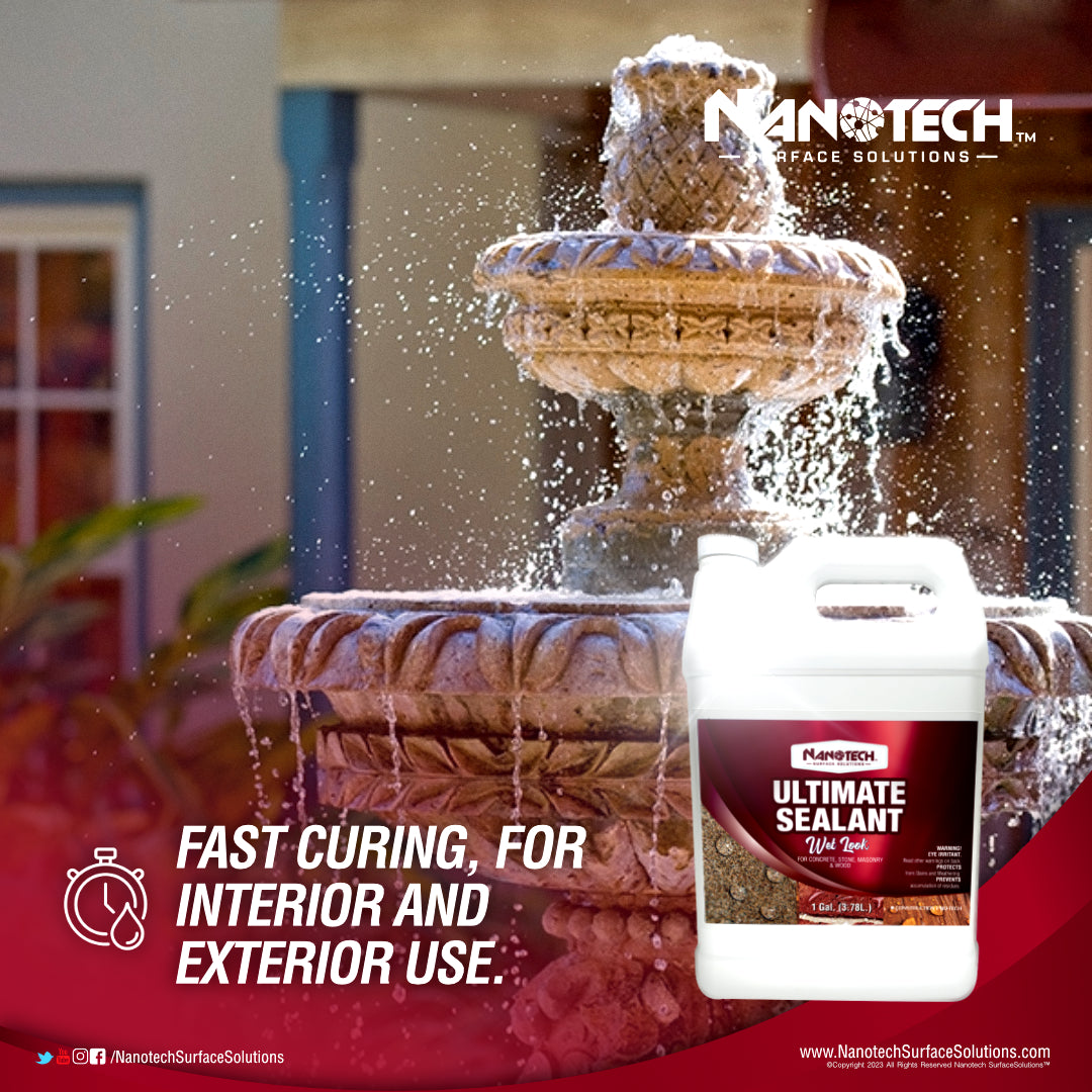 Ultimate Sealant Wet Look is a cutting-edge, nano-based coating designed to protect and enhance concrete, brick, pavers, natural stone, and other absorbent surfaces — polished or not. This water-based, non-toxic formula forms a powerful barrier that repels moisture, oil, mildew, chalk deposits, and UV rays while delivering a sleek, glossy finish. It’s the easy way to keep your surfaces looking stunning and reduce cleaning and maintenance for years to come.